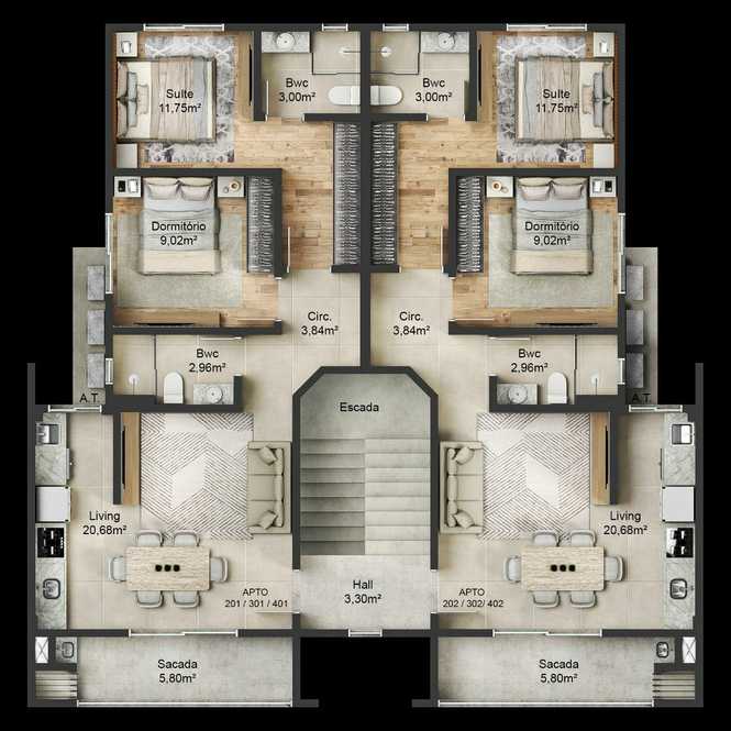 Apartamento 1 Suite mais 1 Dormitório, -