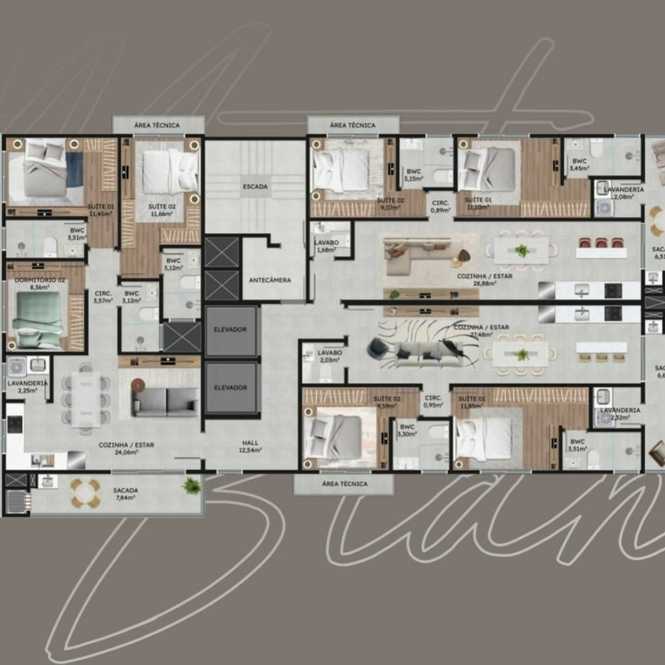 Área privativa de 76,55m² ate 92,13m²